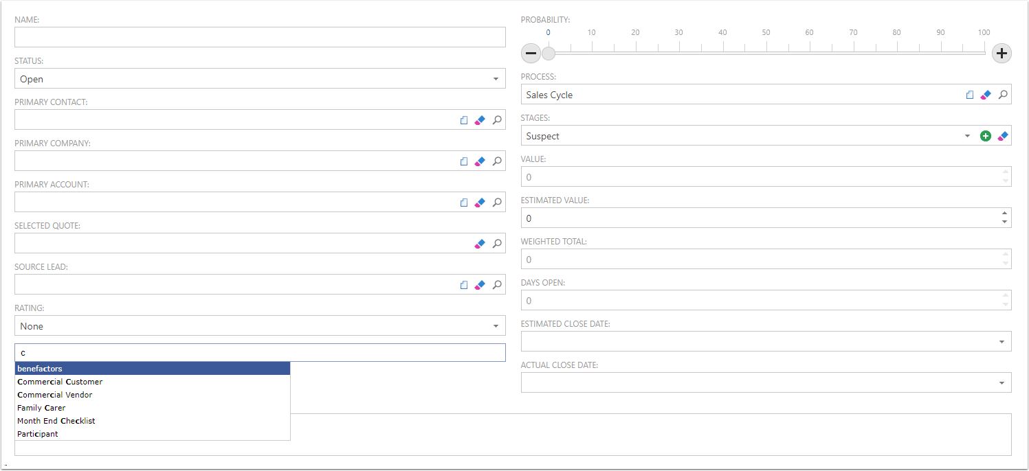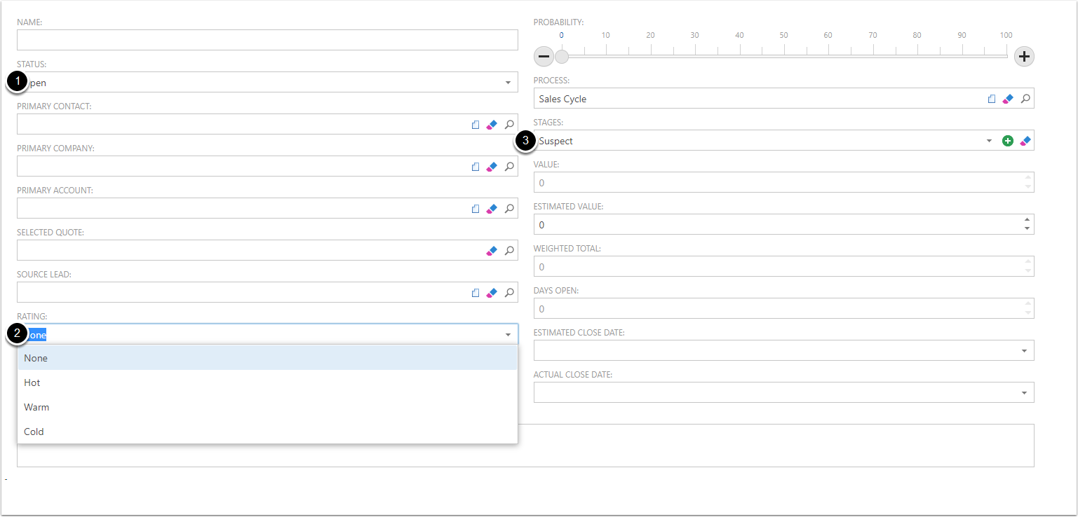 - Rating - This is a dropdown for the current Rating of the Opportunity