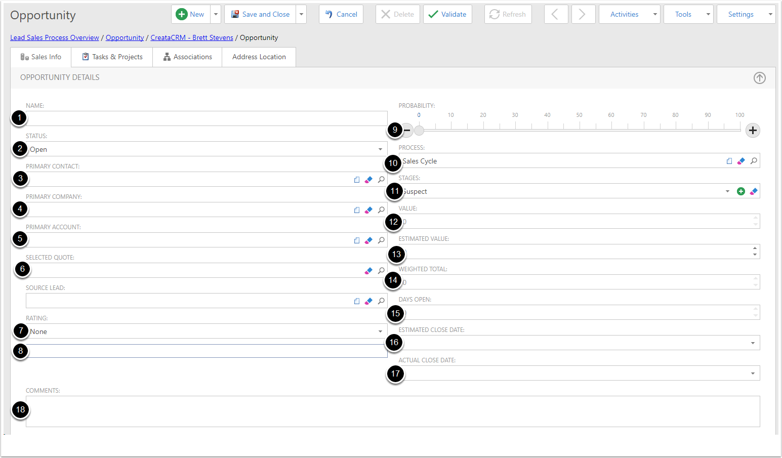 - Tags - This is for listing any Tags that apply to the Opportunity