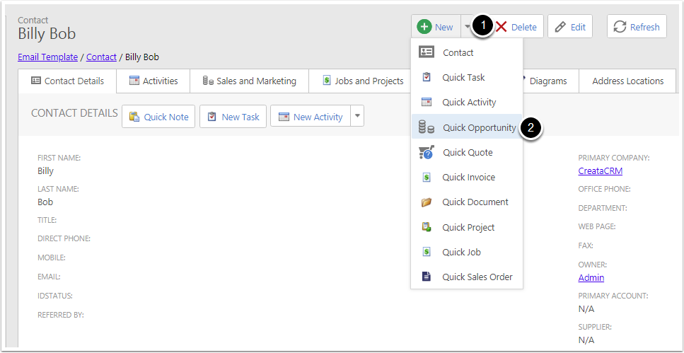 - Click on Quick Opportunity